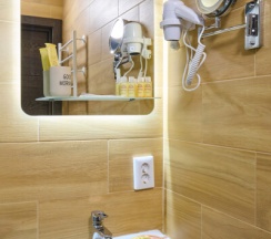 Выбор нас не разочаровал! Отель после хорошего, свежего ремонта (как оказалось мы стали одними из первых посетителей). Номера чистые и уютные. У нас был номер со смарт кроватью, после пеших прогулок, было приятно полежать к верху ножками под приятный массаж)))