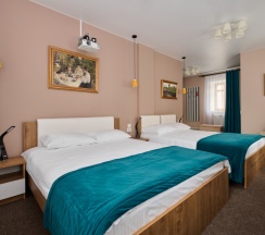 В комфортабельном номере с двуспальной кроватью и креслом-кроватью возможно размещение до 3 гостей.