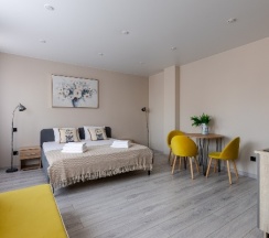 Апартаменты понравились, чисто, уютно, красиво 👍🏼 Расположение конечно такое себе, для тех кто на своей машине подойдет, но если вы «пешеход», то готовьтесь потратить время, нервы, физические силы, ну или деньги, чтобы ездить на такси все время. Рядом нет нормальных столовых, остановок, но есть Магнит недалеко.