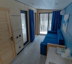 Просторный 2-х комнатный домик с выделенными спальней и гостиной, укомплектованный всем необходимым для комфортного отдыха на природе.