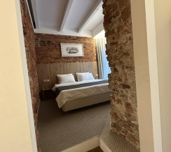Удобная кровать, прекрасный санузел. Нам очень понравилось, что есть и чайник, и кофеварка. Спасибо за посуду и приборы.