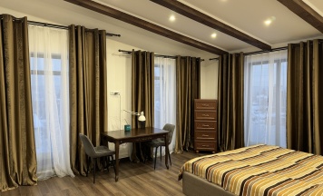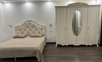 Просторный ВИП номер с королевским спальным гарнитуром и огромной кроватью. В этом номере вы получите комфорт и наслаждение отдыхом.