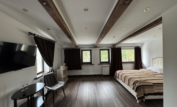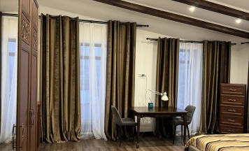 Останавливались в этом доме и остались очень довольны! Просторный, светлый и уютный номер — всё оформлено со вкусом и в классическом стиле. Особенно понравилась мебель: шкаф и комод выглядят добротно и изысканно. Большие окна с лёгкими тюлевыми занавесками пропускают много света, а плотные шторы отлично затемняют комнату для сна. Пол чистый, тёплый, приятный на ощупь. Кровать удобная, бельё свежее. Приятным бонусом оказался телевизор и мини-комплект свечей у окна — уют создаётся с первых минут.