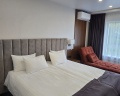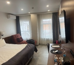 Удобное расположение. Отель приятен и внешней архитектурой здания, и внутренним убранством. Весь персонал вежливый, компетентный. Номер в современном дизайне. Есть кондиционер, телевизор, дополнительная тахта/софа в номере с двумя кроватями, стаканы, ложки, мини-холодильник. Одноразовые банные принадлежности, халаты. Везде чисто. Завтрак в отеле вкусный, есть варианты на выбор, заказывать надо с вечера. Обслуживание быстрое. Можно уже в процессе завтрака дополнительно заказать десерт. Спасибо за такое гостеприимство.