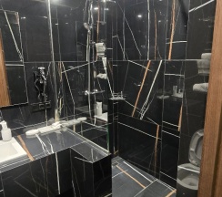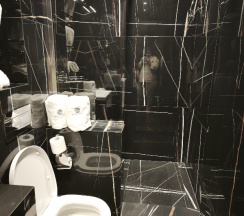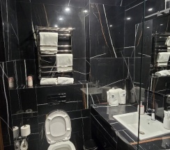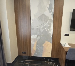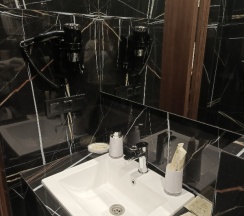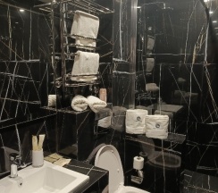 Нам отель поравился) Очень удачное месторасположение. Останавливались в нем дважды. Просторные номера, стильный дизайн, новая мебель, белоснежное белье. В ванной комнате всё необходимое есть, полотенца новые, гигиенические комплекты. Халаты и тапочки мягкие и приятные. Чайник, два вида чая и кофе, сахар. На полу плитка, но возле кроватей пушистые ковры. Шторы блэкаут действительно практически не пропускают свет, удалось выспаться по полной) звукоизоляция номеров хорошая.