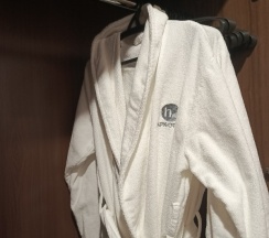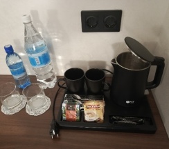 Номер дали на 3 этаже. Отель новый. Номера в отличном состоянии. В номере есть халаты, тапочки, швейный набор, зубной набор, гель для душа, шампунь, мыло, шапочки для душа. 3 полотенца. Есть фен. Кстати посоветовал бы докладывать салфетки для обуви. Недорого, и сейчас, ближе к осени, пригодиться гостям. Полотенца и постельное в идеальном состоянии. Уборка хорошая. Есть в номере чайник, чай, кофе растворимый. Сейф и холодильник. На этаже есть микроволновка. Каждому посетителю дают купон на 10% скидку в ресторан. Но я гулял по городу до самой ночи, поэтому не воспользовался. Кстати на ресепшене делают неплохой кофе. Завтрак вкусный.