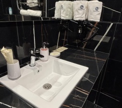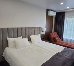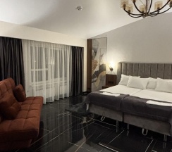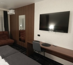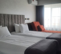 Останавливались в номере на троих, очень довольны! Отель расположен в относительной близости к центру и вокзалу. Приветливый персонал, вкусная еда в кафе. Чистый, просторный номер со стильным дизайном. Завтрак вкусный! В общем, есть все, что нужно для комфортного пребывания, рекомендуем!