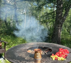 Хотела бы оставить свой отзыв об отдыхе в Эко парке "Наедине". Это были одни из самых чудесных, проведенных выходных. Начну с того, что во-первых, здесь невероятно живописное место: сосны и березы, свежий воздух. Во- вторых если вы такой же любитель комфортного отдыха на природе, то лучшего места просто не найти: в домике есть всё что необходимо, начиная с посуды и заканчивая тёплым полом во всем глэмпинге, интернетом и тв, было уютно и комфортно. Видно, что продумано,все до мелочей. В-третьих здесь всегда есть чем заняться:прогулки в сосновом лесу , катание на ватрушках и лошадях, мангальная зона, ну и рядом в 5-ти минутах горнолыжная база Банное. Ну и самое важное оно находится в самом живописном месте нашей Республики. У нас остались самые тёплые воспоминания, видно, что всё сделано с душой и на очень хорошем уровне. Спасибо за гостеприимство, желаем вашей базе процветания, и с удовольствием вернёмся сюда ещё.💚