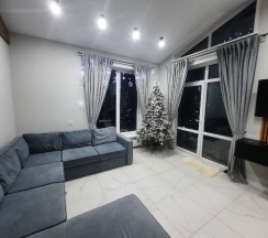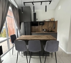 Благодарим за восхитительный отдых!!! Очень красивый и просторный дом Все необходимое для проживания есть: на кухне холодильник, посуда, посудомоечная машина, варочная поверхность. В спальнях чистое постельное белье, в ванной комнате шампунь, фен, зубные щетки и зубная паста. Телевизоры в каждой комнате, во дворе качель и небольшая песочница, зона барбекю, очень красивая терраса с мебелью. Есть все необходимое для жарки мяса - шампуры, решетка, опахало.
