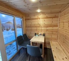 Новый, уютный, чистый, есть все необходимое для гостей. Взяли в дополнение чан, ооооочень понравилось.