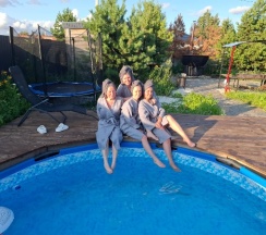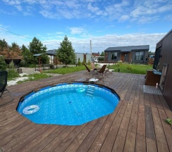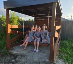 Ездили в этот домик семьей отдыхать, очень понравилось! Есть чан, баня, бассейн, мангал, качель, для детей батут, песочница. В самом домике есть всё для проживания. Не хотелось даже уезжать. Вернёмся к вам ещё :)
