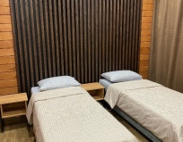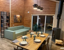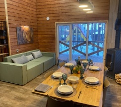Просторный, уютный и очень удобный - в каждой комнате есть свой санузел с душем, что для нас было большим плюсом. Особенно порадовала большая кухня-гостиная и просторная веранда с удобной качелью. Отдельный плюс - хороший мангал во дворе, отлично провели время с шашлыками.