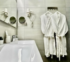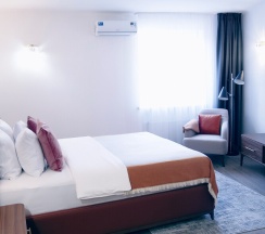 Для максимального комфорта гостей каждый номер оборудован всем необходимым: высокоскоростной бесплатный Wi-Fi, кондиционер, цифровое ТВ (Smart TV), надежный сейф, кофейный уголок, бутилированная вода, косметические и другие необходимые принадлежности.