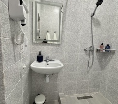 Останавливались здесь 6 сентября, встречал нас лично очень приветливый добродушный хозяин. Бронировали трёхместный номер с раздельными кроватями, здесь есть все необходимые туалетные принадлежности, включая зубные щётки и паста одноразовая. В номере также находится электрочайник, кофе ,чай ,сахар, питьевая вода. Номер очень чистый уютный, кровати новые отдыхать очень удобно. Большое спасибо хозяину за приём!