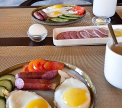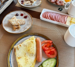 Кухня удивила, вкусные завтраки включены, повар очень любезная женщина, приготовила нам отменное блюдо из рыбы!