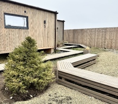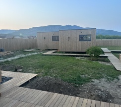 Домики комфортабельные всё необходимые вещи имеются, всё современное,чистое,выдержано в одном стили,во дворе идёт благоустройство полным ходом, но это происходит ненавязчиво, было отключение электроэнергии хозяин включил генератор ( заботятся о своих постояльцах🙂). Большое спасибо за приятный отдых