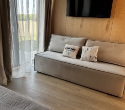 Отличное место для отдыха с семьёй 😉 Видно, что данное место в стадии доделок и будет ещё более комфортно на территории. Понравился домик. С виду маленький, но внутри все продумано до мелочей,интерьерное решение,обшивка... класс, молодцы 👍 в шаговой доступности кафе, магазины. Цена =качество ☀️❤️