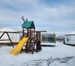 2. У каждой юрты есть своя мангальная зона! А после бани можно окунуться в подогреваемый бассейн. Температура воды комфортная, можно плавать с удовольствием.