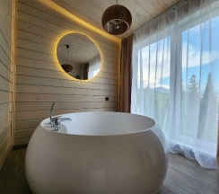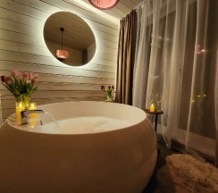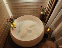 Фишкой является спа зона. Идеальное место для уединения со второй половинкой или самим собой. Там для Вас уже подготовили свечи, пену для ванны и натуральное хвойное масло. Релакс 🤤