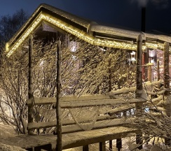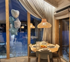 Были с мужем на годовщину свадьбы в домике лодж 2, нам все очень понравилось, приветливый персонал встретил при заселении, в честь годовщины в домике было поздравление и фруктовая тарелка, сам дом чистый, уютный, тёплый, с красивыми интерьерными решениями и конечно шикарным видом, все как в отеле 5 звезд, халаты, тапочки, полный набор полотенец, тактильно приятные постельное белье и матрас, все необходимые банные принадлежности, полное оснащение кухни, кофе премиум качества, чай, сливки. Понравилось что есть проектор, сауна и печь для приятного времяпрепровождения.