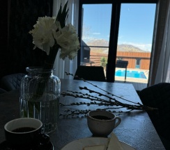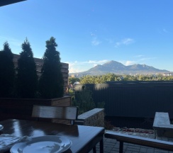 Очень красивый вид на горы! Чисто и красиво. Бассейн с подогревом. Останавливались с 2 детьми, все понравилось!