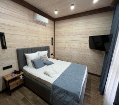 Остановились с семьей. Очень впечатлены. Комфортные и современные домики, чистота, уют. Есть все необходимое для комфортного пребывание. Бассейн и сауна. Мануальная зона. Обязательно приедем еще раз