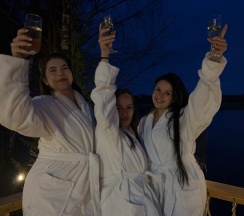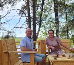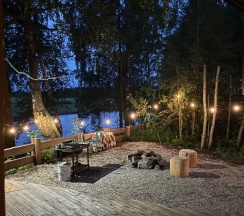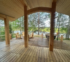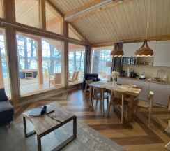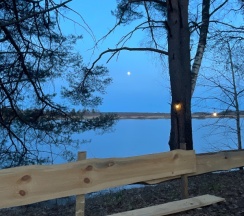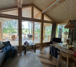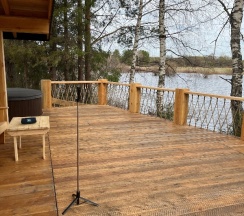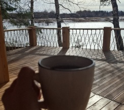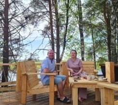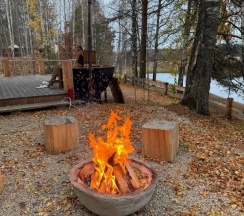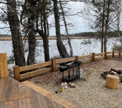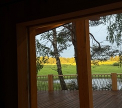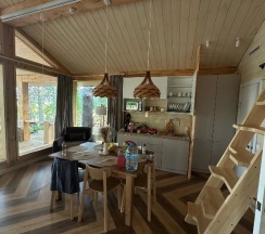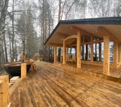Отдыхали семьей с друзьями. Выбрали дом "Золотая вершина". Дом ооочень ютный и комфортный, все есть для удобства: посуда, полтенца, халаты, мягкие подушечки и т.д. Замечетельный вид из окна на террасу и озеро, на террасе очень здорово посидеть утром с кофе и насладиться тишиной и пейзажем. В доме невероятный запах дерева. Территория дома огорожена, никто не беспокоит и никто вас не видит. Покупались в чане, посидели у костра. Хотим теперь приезжать сюда как можно чаще.