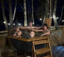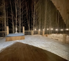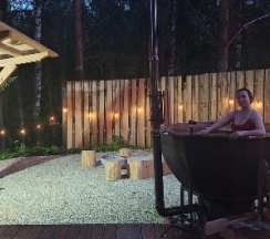 На днях провели чудесный свой семейный выходной в домике «Хвойная опушка»! Понравилось абсолютно всё. Свежий воздух вдали от городского шума, чистое уютное пространство дома с современным дизайном, ароматный пихтовый чан, который особенно понравился детям! Сон всей семьи был полноценным и приятным в свежести воздуха и мягкого постельного белья!