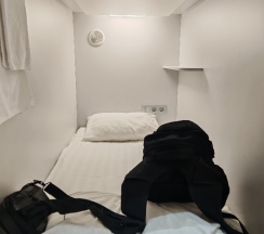 Хороший капсульный отель, чистенький , красивый, дают полотенца, хорошие чистые санузлы , есть синий свет красивый, есть холодильник, кухня, и ассортимент всего самого необходимого