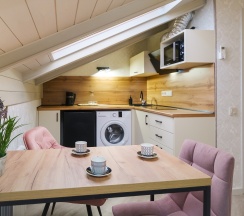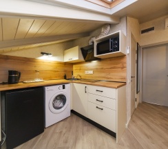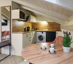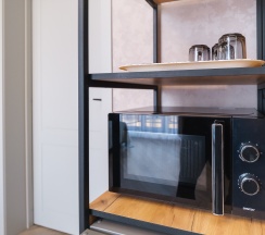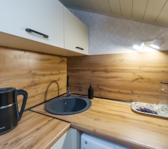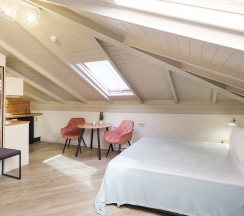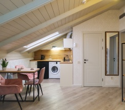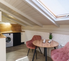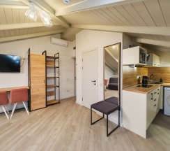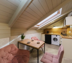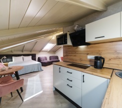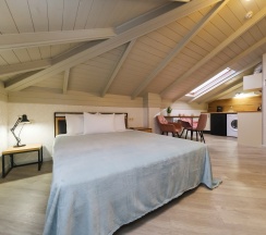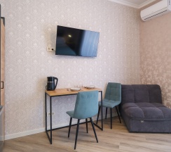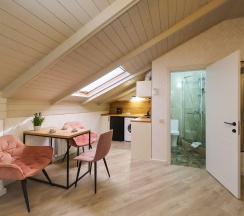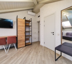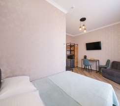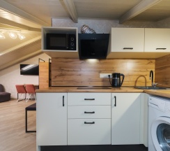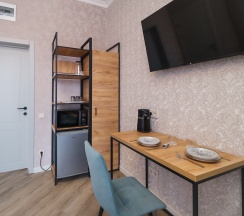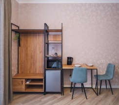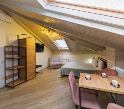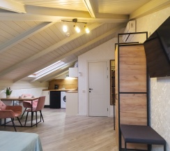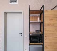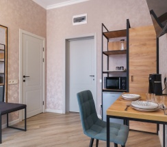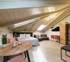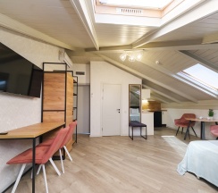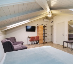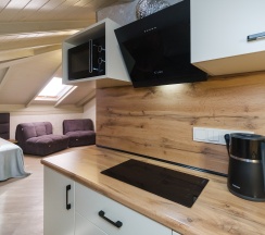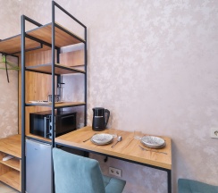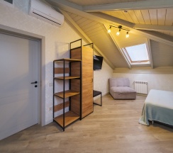 Оснащены мебелью в стиле лофт,удобной кроватью размером king-size и креслом-кроватью. Современный дизайн. Для комфортного пребывания созданы все условия.