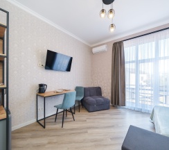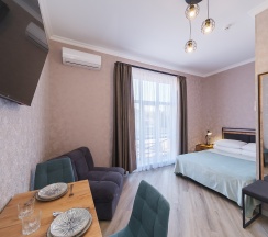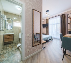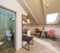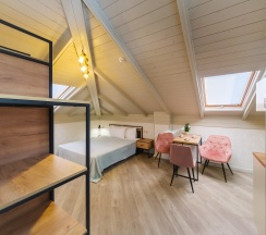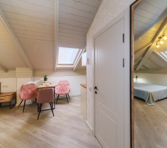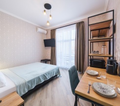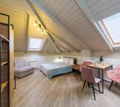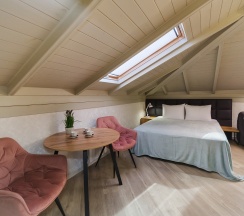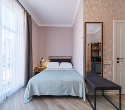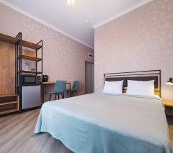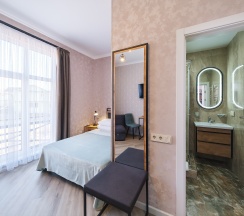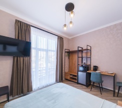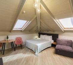 Мы предлагаем уютные номера в стиле лофт, оборудованные современной мебелью и техникой. Панорамное остекление и французский балкон добавляет нотку изысканности в интерьер.