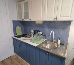 Все удобства (хорошая добротная мебель, теплый пол, качественное постельное белье и полотенца, полноценная миникухня, душ и унитаз, горячая вода, wi-fi, территория 26 га).