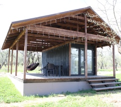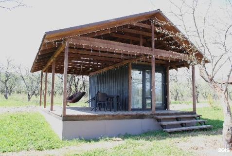 Комфортабельные гостевые дома (всего на экоферме 5 гостевых домов) с большими верандами в яблоневом саду.