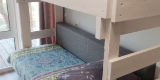 В домике может разместиться семья из четырех человек (при размещении двух человек из семьи на двуспальном диване). Или три человека - при размещении одного человека на диване.