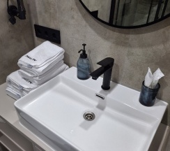 Отдыхали со 2 по 4 октября в апартаментах: "Скала". Были приятно удивлены. Чистая, уютная, светлая квартира. Предоставили тапки, набор с зубными щетками, полотенца как в отеле, гель для душа, шампунь, в коридоре стоял кулер с водой. Постельное белье чистое, все что нужно на пару дней все было. Приятно удивил фен, обычно это что то древнее и еле-еле работающее, а тут Дайсон)) Заранее отправили видео инструкцию по заселению, перед заселением направили все необходимые коды доступа. Менеджер всегда была на связи, очень вежливые и доброжелательные. Видно что апартаменты сделаны с умом и все для комфорта проживающих. Рядом пока нет остановки, добираться либо на такси либо пешком. Из магазинов есть красное белое рядом. Пожалели что в Калининграде выбрали не вас.