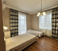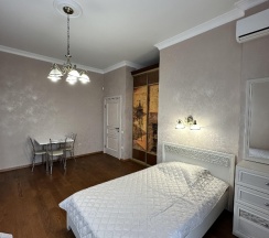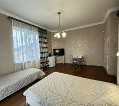 Арендовали двухкомнатный номер! Заселение прошло без проблем, заранее уточнили про машину место > с парковкой тоже проблем никаких нет. Ремонт свежий, на кухне все оборудование и посуда так же новые! Спасибо за прием!