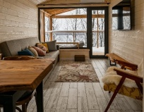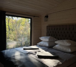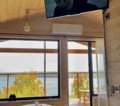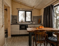 В домике есть кухня , посуда, холодильник, плита, св печь , отдельная спальня , и невероятно просторная терраса с которой не хочется уходить! Виды завораживают!