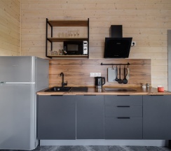 Вас ждут 7 новых коттеджей, спроектированных с учетом самых современных требований к комфорту. Просторные помещения (от 75 кв.м), стильный дизайн, полностью оборудованная кухня, Smart TV с доступом к развлечениям, Wi-Fi – все для вашего удобства. Расслабьтесь в бане, проведите вечер с друзьями на терассе с видом на лес и воспользуйтесь мангальной зоной.