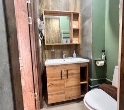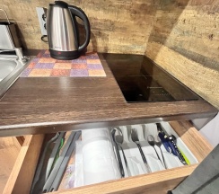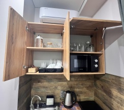 Чисто, удобное спальное местно. Все продумано до мелочей, мыльно-гигиенические принадлежности. Чай/кофе.