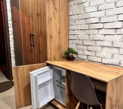 Очень уютный, стильный отель! Вся мебель, инвентарь качественные, приятно пользоваться. В комнате есть все что нужно, от полотенец и постельного до нитки с иголкой. Спасибо, что думаете о комфорте каждого! Так же есть памятка с номерами доставки еды, местами, которые можно посетить в городе. Сам город с просторными, тихими чистыми улицами, нам очень понравился. С удовольствием приедем к вам ещё раз!