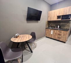 Очень современный отель. Все чисто и уютно. Есть все необходимое. Магазины в пешей доступности. Бесконтактное заселение . Все удобно и продуманно!