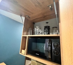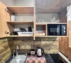 Каждый год ездим из Омска в Башкирию. Обычно дорога занимает 15-18 часов и остановки не требуются. В этом году поехали с малышом, проезжали Южноуральск в 20:00. Решили остановиться на ночевку. Выбрала эти апартаменты по отзывам и не прогадала. Оперативно забронировали, администратор на связи. Чисто, современно, рядом магазины и кафе. Все нужное есть в наличии, вся техника исправна, чай-кофе, средства для ухода, полотенца, тапки. Кондиционер ♥️ При необходимости можно приготовить поесть, но мы заказали вкуснейшую пиццу из Akko one.