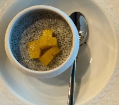 На завтрак авокадо тост, чиа-пудинг, латте на миндальном. Все понравилось.