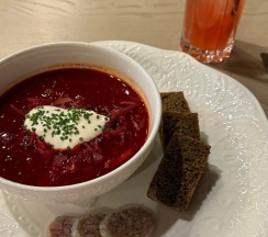 Ресторан выше всяких похвал. На ужин брала борщ, закуску вителло тонатто, лимонад.