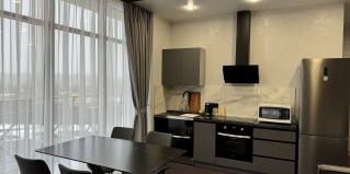 Не первый раз отдыхаю на Солнечной Долине но в первые в таких апартаментах ' Всё в номере современное 'сам номер уютный' чистый в номере имеется всё для комфортного проживания' арендодатель Дарья приятная жещина всегда на связи' отвчает на все вопросы