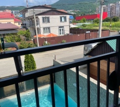 Сейчас находимся в гостевом доме Град , номер с балконом с видом на горы 🏔️. Классный бассейн с теплой водой и водопадом. На территории есть кухня, мангал , обеденные зоны . Все очень чисто аккуратно.