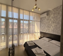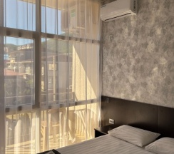 Отдыхали этим летом в отеле Град. Отель просто 🔥. Комнаты большие, светлые,есть все, чайник, кружки,кондиционер, фен,мини холодильник,на каждом балконе есть сушилка для белья и это очень удобно.Есть утюг на первом и третьем этажах.Во дворе есть кухня и столики, где можно приготовить и покушать.Так же на кухне можно занять шкафчик и убирать свои продукты,есть холодильник и на кухне где можно положить готовую еду, чтобы не нести ее в номер.Так же есть мангальная зона, где можно пожарить шашлык,овощи.Администратор Анна просто замечательная девушка, вежливая,приветливая, все расскажет и подскажет. До моря идти 10-15 минут прогулочным шагом, но можно и идти дольше если останавливаться у сувенирных лавок,рядом есть пятёрочка, красное белое,аквапарк.Самое замечательное что в отеле есть бассейн, спасение для всех, особенно для детей. Отель расположен территориально очень удобно.Рекомендую данный отель. Вернемся сюда обязательно.