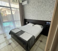 Сейчас находимся в нем. Придомовая территория хорошая. Чистая убранная, есть свой бассейн. Кухня. В номере хорошо светло, чисто. Симпатичный интерьер. Одно но, стены тонкие очень очень хорошо слышно соседей.