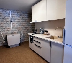 Кухня общая, чистая, просторная, есть все принадлежности и хорошая посуда.
