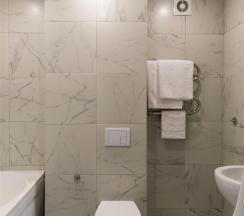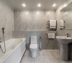 Большая ванная комната оборудована ванной и необходимыми гигиеническими принадлежностями.